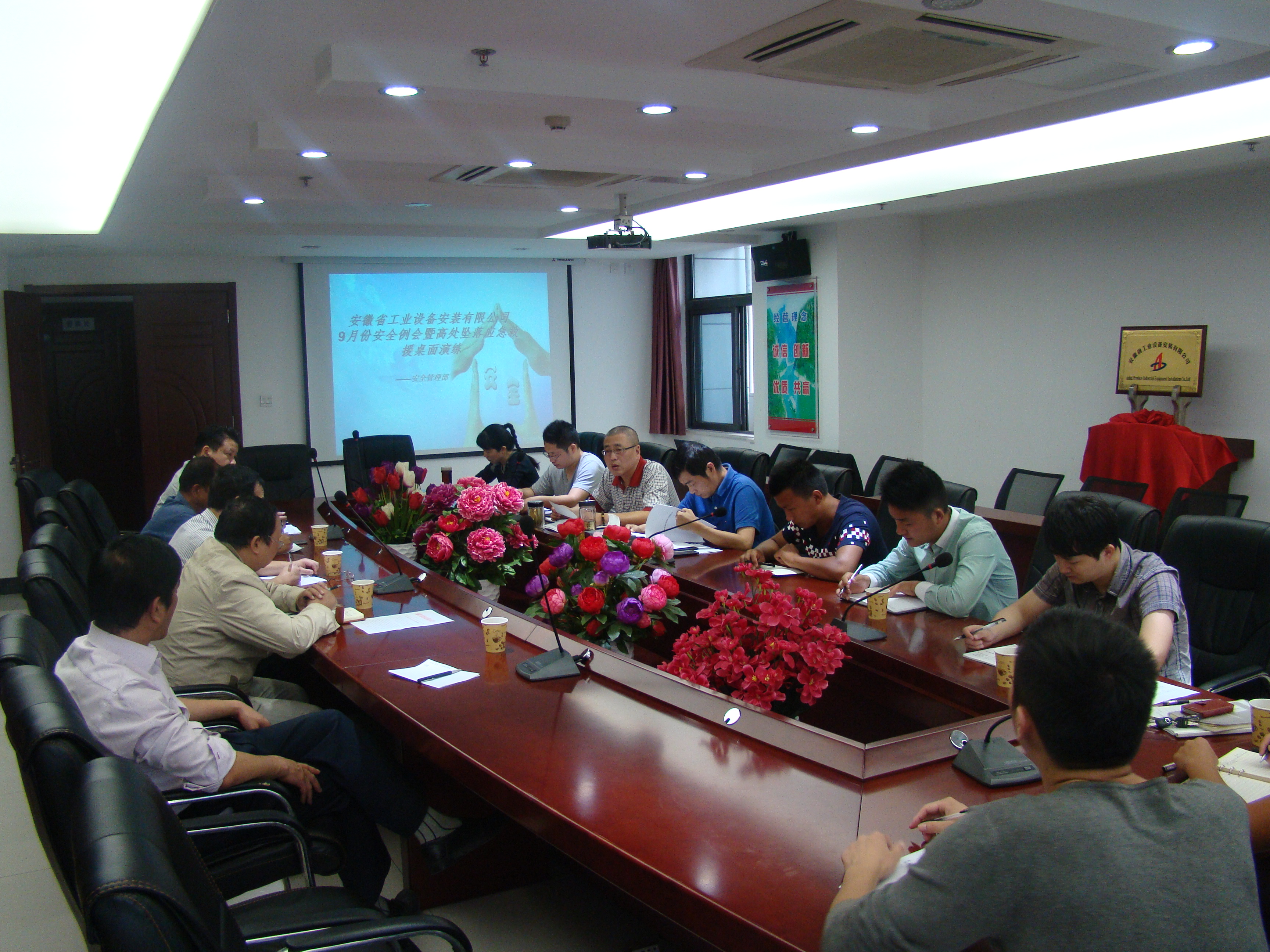 為增強公司員工的防墜減災意識,掌握應急的正確方法,確保事故來(lái)臨時(shí)公司應急預案能夠快速啟動(dòng),9月30日上午,公司在第一會(huì )議室召開(kāi)了9月份安全例會(huì )暨應急預案桌面演練。公司副總經(jīng)理劉安俊,安全管理部全體成員、各職能部門(mén)有關(guān)人員、各分公司安全科長(cháng)及合肥地區在建項目專(zhuān)職安全員等近30人參會(huì )。