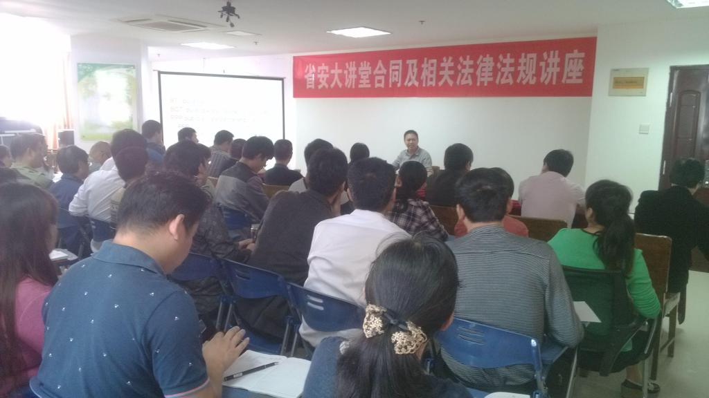 10月24日上午,省安大講堂“合同及相關(guān)法律法規專(zhuān)題講座”在公司職工之家如期舉行。本期講座邀請了集團公司總法律顧問(wèn)申玉恩為大家授課。公司黨委書(shū)記、紀委書(shū)記胡六中,工會(huì )主席李原,公司機關(guān)及分公司中層以上管理人員、相關(guān)部門(mén)員工70余人參加了培訓。