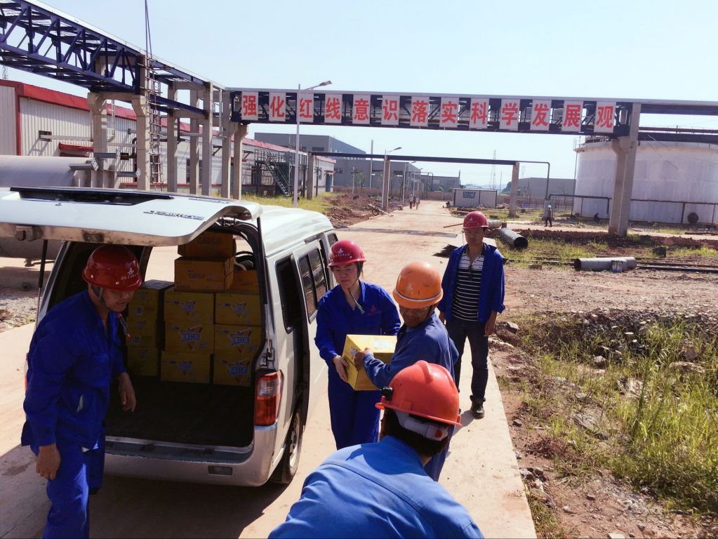 時(shí)值夏季,烈日炎炎,酷熱難耐。奮戰在一線(xiàn)員工們的身體健康狀況牽動(dòng)著(zhù)公司領(lǐng)導的心。7月17日下午,安慶分公司經(jīng)理史崇松,黨支部書(shū)記劉紅艷深入一線(xiàn),看望慰問(wèn)奮戰在一線(xiàn)的施工人員,并帶上了清涼解暑的飲品,為他們在炎熱的夏季送去了一份清涼。