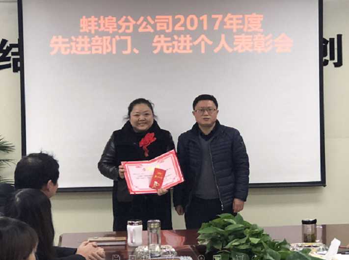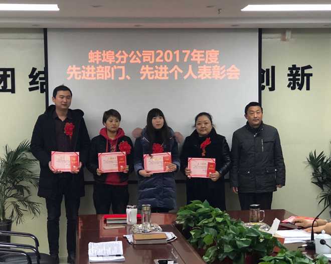 2月12日下午,蚌埠分公司舉行了2017年度員工績(jì)效考評暨先進(jìn)部門(mén)、先進(jìn)個(gè)人表彰會(huì )。分公司全體員工共30余人參加了此次會(huì )議。會(huì )議由分公司工會(huì )主席程茂麗主持。