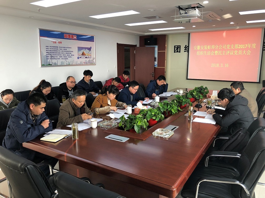 3月16日下午,蚌埠分公司黨支部召開(kāi)了2017年度專(zhuān)題組織生活會(huì )暨民主評議黨員大會(huì ),會(huì )議由分公司黨支部書(shū)記洪軍主持。公司副總經(jīng)理劉安俊、公司黨委辦公室楊俊輝以及分公司全體黨員參加會(huì )議。