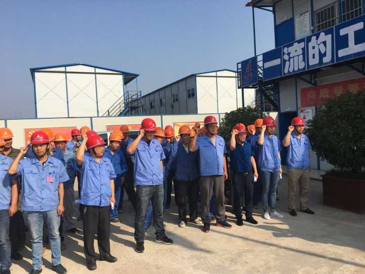 隨著(zhù)儀式的展開(kāi),分公司副經(jīng)理張漢軍帶領(lǐng)全體人員進(jìn)行了莊嚴的安全宣誓。接著(zhù),分公司總工程師梁興邵現場(chǎng)進(jìn)行安全知識宣講,分公司工會(huì )主席、項目臨時(shí)黨支部書(shū)記程茂麗隨后宣讀了《關(guān)于在安徽中煙蚌埠卷煙廠(chǎng)項目部開(kāi)展“中煙項目干勁足 安全生產(chǎn)爭先鋒”勞動(dòng)競賽活動(dòng)的通知》。最后,項目執行經(jīng)理郭洋代表項目部表態(tài)發(fā)言:一定會(huì )以本次活動(dòng)為契機,加強現場(chǎng)安全管理,努力提升項目安全管理水平再上新臺階。