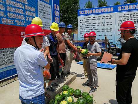 6月18日一大早,項目負責人攜管理人員,帶著(zhù)粽子、西瓜、白糖等慰問(wèn)品,為奮斗在一線(xiàn)的工人帶去一份份節日的問(wèn)候和祝福,并叮囑大家規范操作,遠離三違,安全生產(chǎn)。