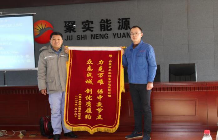 2019年1月14日,安徽安裝承建的內蒙古聚實(shí)能源有限公司焦化升級改造生產(chǎn)清潔化學(xué)品項目,克服工期緊、任務(wù)重、施工難度大等諸多困難,安全、高效、優(yōu)質(zhì)的圓滿(mǎn)完成了工程建設任務(wù)。業(yè)主內蒙古聚實(shí)能源公司總經(jīng)理張春軍向公司贈送內容為“力克萬(wàn)難 保中交節點(diǎn);眾志成城 創(chuàng )優(yōu)質(zhì)履約”的錦旗。