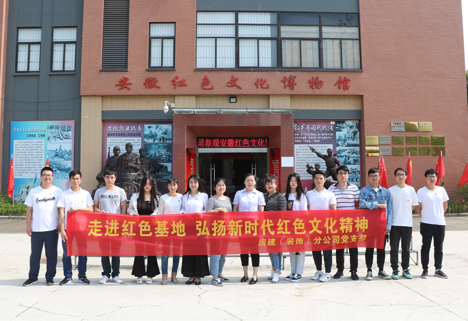 為進(jìn)一步提升分公司黨支部全體黨員的綜合素質(zhì),強化黨組織的凝聚力、戰斗力和號召力,激勵所屬黨員繼承和發(fā)揚黨的優(yōu)良傳統和作風(fēng),更好地完成本職工作。5月31日上午,房建(裝飾)分公司黨支部在安徽紅色文化博物館開(kāi)展了“走進(jìn)紅色基地 弘揚新時(shí)代紅色文化精神”的主題黨日活動(dòng),支部全體黨員、入黨積極分子、部分團員也參加了本次活動(dòng)。