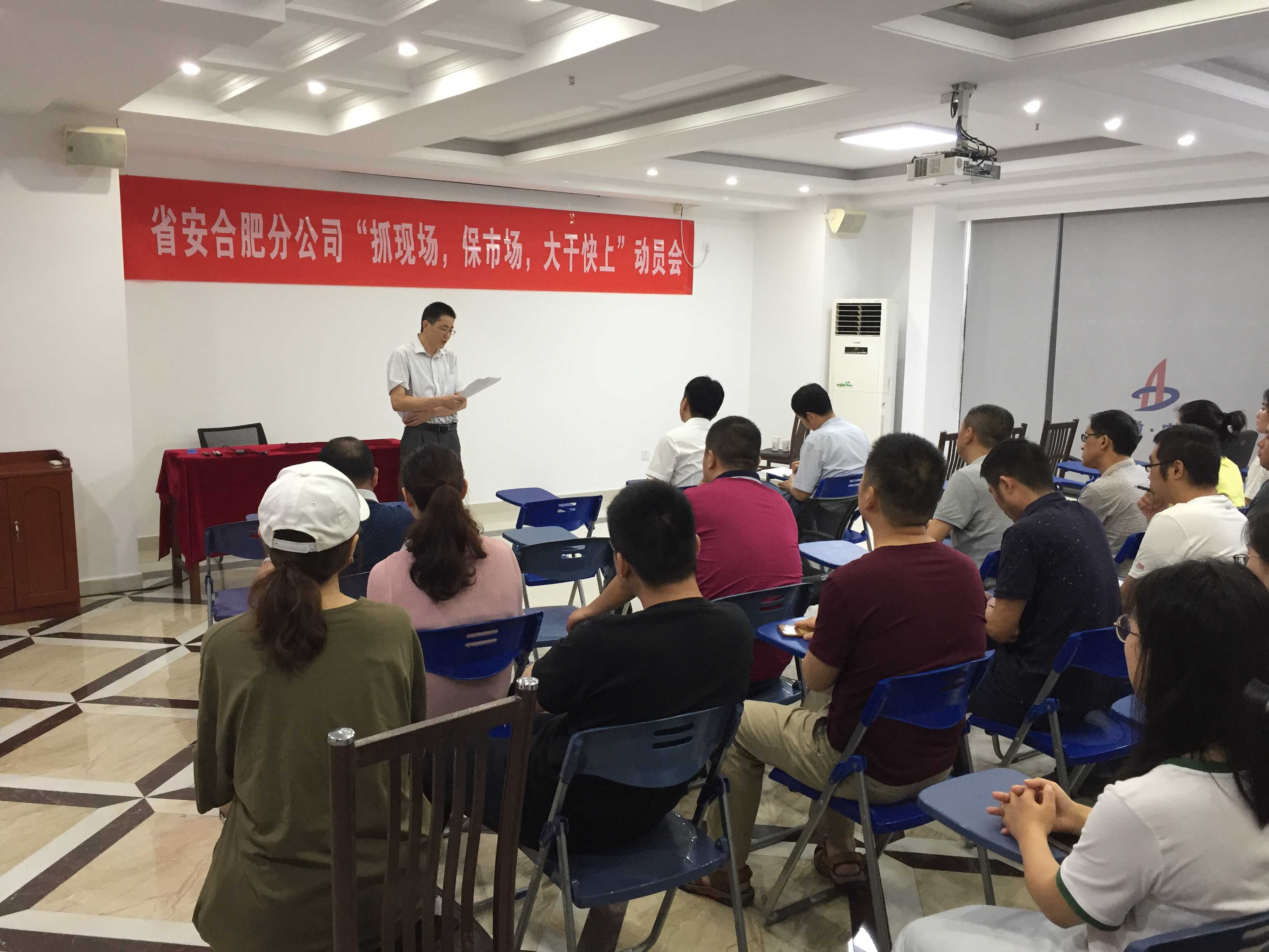 合肥分公司積極響應公司的號召,2019年6月19日上午,分公司組織機關(guān)全體人員和合肥地區項目經(jīng)理及項目管理人員共計30余人在公司15樓職工之家召開(kāi)了“抓現場(chǎng)、保市場(chǎng)、大干快上”動(dòng)員會(huì )。
