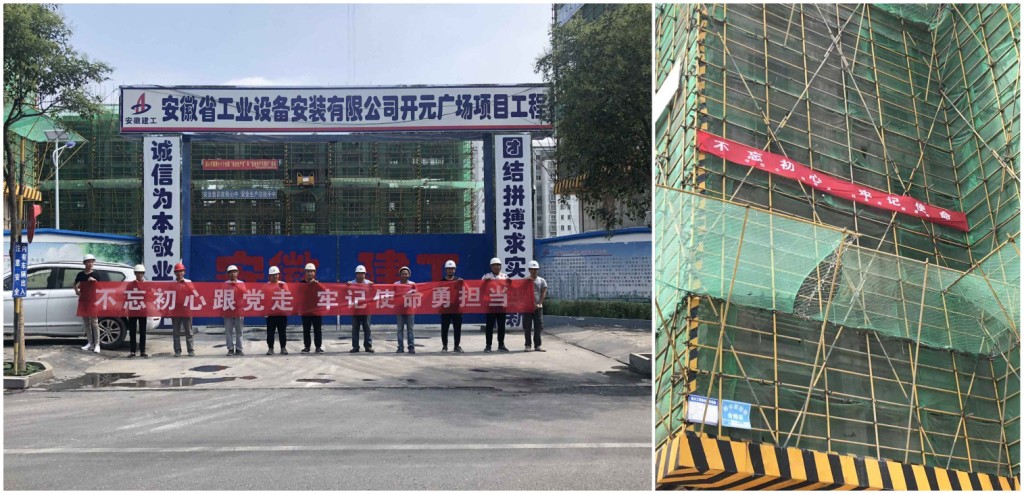 一是懸掛一批宣傳標語(yǔ)營(yíng)造良好氛圍。項目施工現場(chǎng)通過(guò)懸掛主題教育橫幅、制作宣傳牌、LED電子顯示屏等方式將“不忘初心、牢記使命”主題教育總要求等內容懸掛張貼在項目醒目位置,在施工現場(chǎng)形成了一道獨特而亮麗的風(fēng)景線(xiàn);二是通過(guò)“學(xué)習強國”APP等媒體資源線(xiàn)上學(xué)。督促廣大黨員做好日常學(xué)習,突出抓好“四學(xué)”,時(shí)刻牢記主題教育總體要求,將理論學(xué)習貫穿主題教育始終和項目生產(chǎn)始終;三是佩戴黨徽亮身份,大干快上作表率。黨員干部帶頭行動(dòng),爭當表率,帶領(lǐng)項目部全體員工將思想統一到“不忘初心 牢記使命”主題教育活動(dòng)上來(lái),將行動(dòng)集中到“大干快上”的熱潮上來(lái),持續開(kāi)展“抓現場(chǎng),保市場(chǎng)”活動(dòng),強化項目團隊建設,為完成各項施工任務(wù),扎實(shí)開(kāi)展“不忘初心、牢記使命”主題教育而持續努力。
