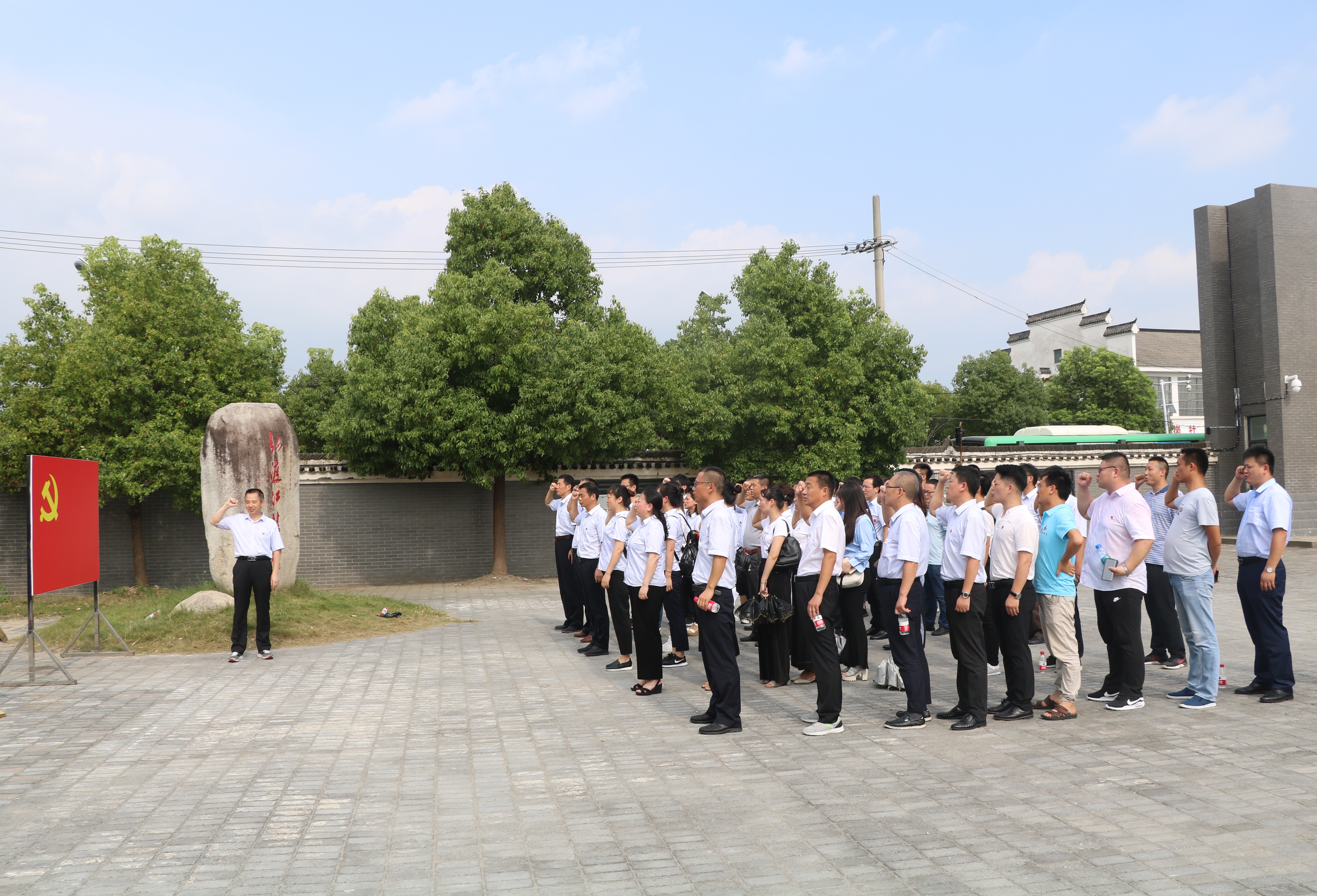 大家首先觀(guān)看了關(guān)于渡江戰役總前委舊址紀念館的紀錄片。隨后黨委書(shū)記、董事長(cháng)胡六中帶領(lǐng)全體黨員在黨旗面前重溫入黨誓詞。