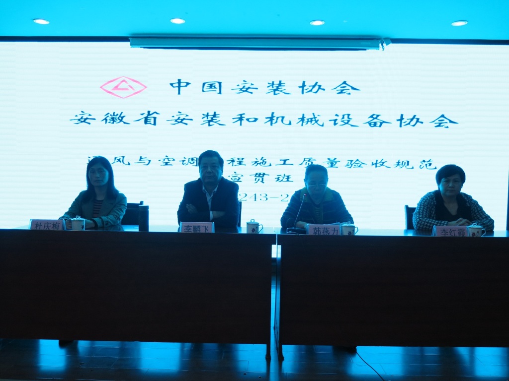 2017年11月10日,由中國安裝協(xié)會(huì )主辦,安徽省安裝和機械設備協(xié)會(huì )承辦的《通風(fēng)與空調工程施工質(zhì)量驗收規范》(GB50243-2016)宣貫班在安徽合肥成功舉辦。這是中國安裝協(xié)會(huì )與安徽省安裝和機械設備協(xié)會(huì )首次合作開(kāi)展培訓。來(lái)自北京、山西、江蘇和我會(huì )會(huì )員單位負責人、技術(shù)負責人、工程師等相關(guān)人員200多人參會(huì )。安徽省安裝和機械設備協(xié)會(huì )副會(huì )長(cháng)李鵬飛作了開(kāi)班動(dòng)員,中國安裝協(xié)會(huì )培訓班主任韓燕力提出基本要求。