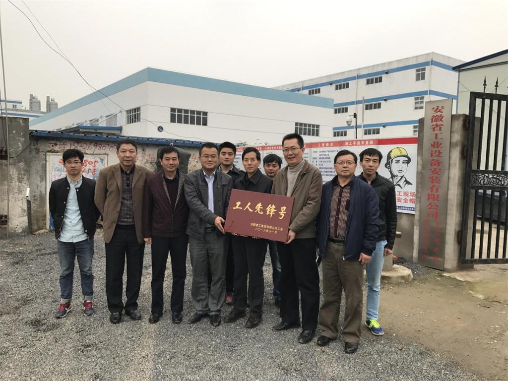 10月31日,以集團公司工會(huì )主席徐曉光為組長(cháng),安徽二建工會(huì )主席李林、安徽路港工會(huì )副主席殷陽(yáng)明為組員,一行3人檢查組,蒞臨安徽安裝公司皖北藥業(yè)二期項目檢查、驗收、考評,創(chuàng )建“工人先鋒號”,并進(jìn)行了現場(chǎng)授牌。