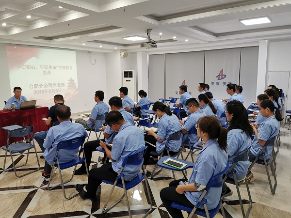 根據公司黨委“不忘初心、牢記使命”主題教育工作部署,9月6日下午,合肥分公司黨支部召開(kāi)“不忘初心、牢記使命”主題教育黨課報告會(huì ),黨支部書(shū)記胡迎東作了題為《“不忘初心、牢記使命”主題教育成果推動(dòng)合肥分公司發(fā)展》的黨課報告。分公司領(lǐng)導班子成員、全體黨員、機關(guān)工作人員參與會(huì )議聽(tīng)取了報告。