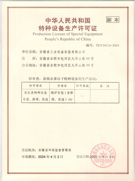 特種設備安裝改造維修許可證(鍋爐)