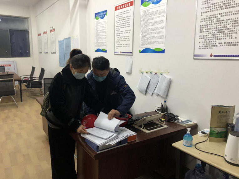 來(lái)到施工現場(chǎng),檢查組一行首先查看了防疫物資儲備情況、返崗勞務(wù)作業(yè)人員進(jìn)出工地人員排查隔離情況,現場(chǎng)衛生消毒、清潔打掃、體溫檢測、勞動(dòng)防護進(jìn)場(chǎng)等,接著(zhù)實(shí)地查看了工程的施工進(jìn)展情況。
