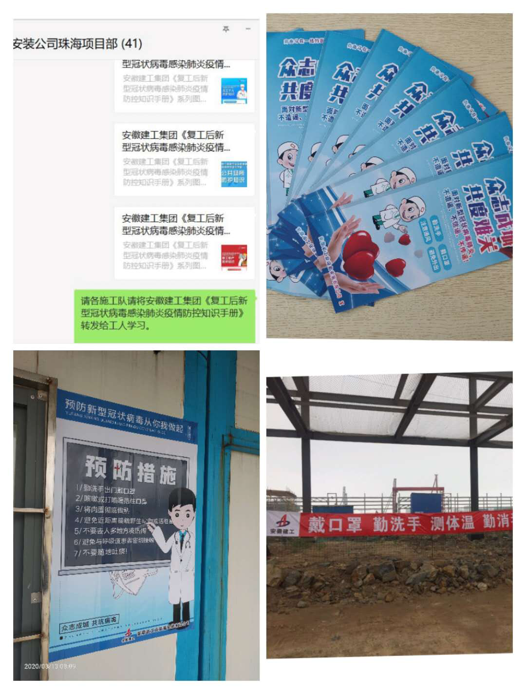 做好疫情宣傳,做好疫情指導。項目部通過(guò)微信群、印制宣傳手冊、懸掛條幅等提高防控意識,形成全員重視自身防護的良好氛圍。