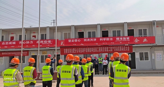 為確保年度各項目目標任務(wù)順利完成,貫徹落實(shí)集團和安裝公司兩級職代會(huì )及疫情防控、復工復產(chǎn)工作推進(jìn)會(huì )精神,3月21日上午,安徽安裝召開(kāi)蕪湖宇培裝配生產(chǎn)基地項目“大干90天”勞動(dòng)競賽動(dòng)員會(huì )。公司黨委書(shū)記、董事長(cháng)胡六中,紀委書(shū)記、工會(huì )主席李寬旭,合肥分公司領(lǐng)導班子成員、項目管理人員和施工班組參加了競賽動(dòng)員會(huì )。