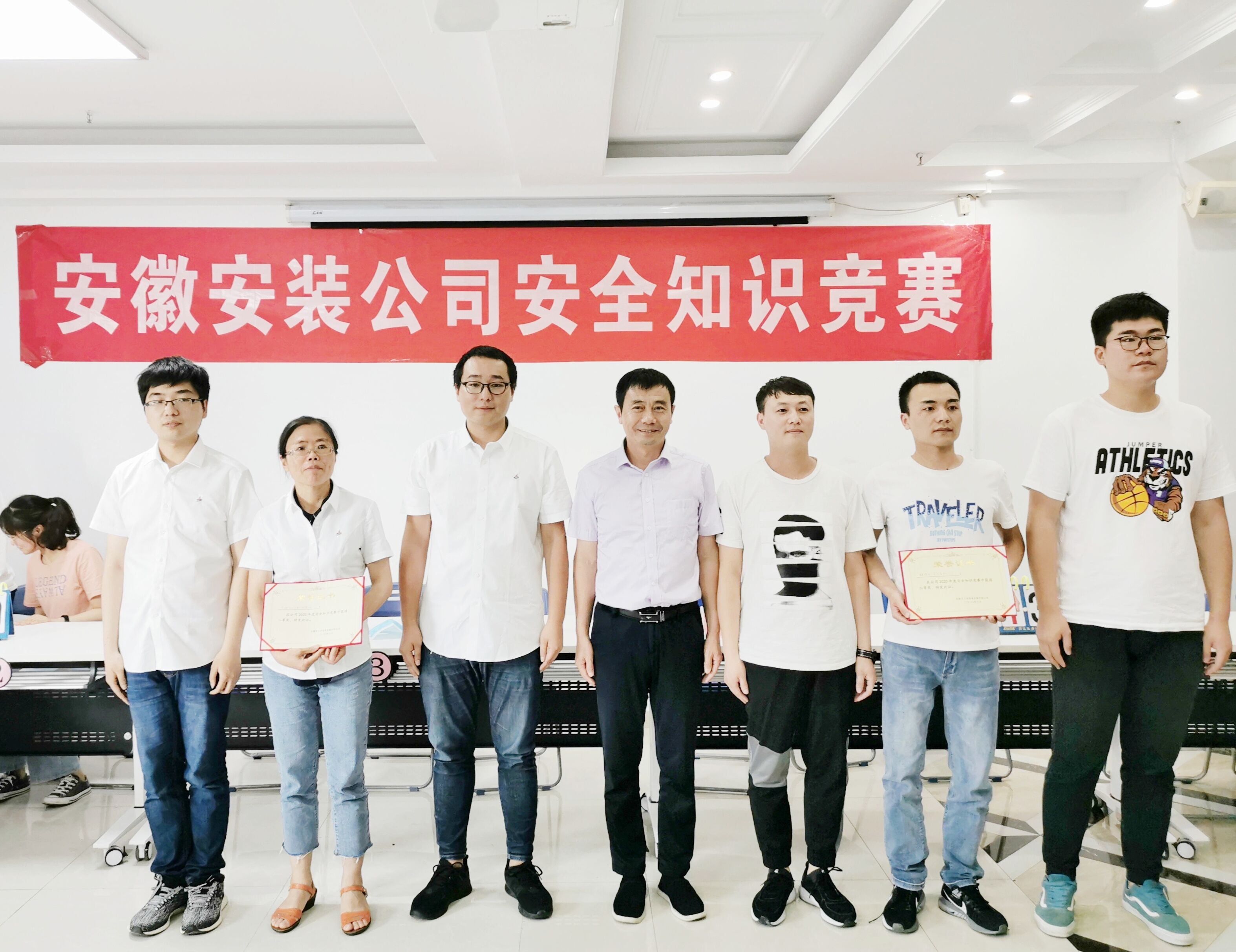 為切實(shí)開(kāi)展2020年全國第十九個(gè)“安全生產(chǎn)月”活動(dòng),進(jìn)一步提高全員安全意識與知識水平,普及疫情防控相關(guān)知識,6月11日下午,安徽安裝公司舉辦安全生產(chǎn)知識競賽。公司黨委書(shū)記、董事長(cháng)胡六中,副總經(jīng)理高飛,紀委書(shū)記、工會(huì )主席李寬旭,副總經(jīng)理李原,總工程師吳繼成應邀出席。