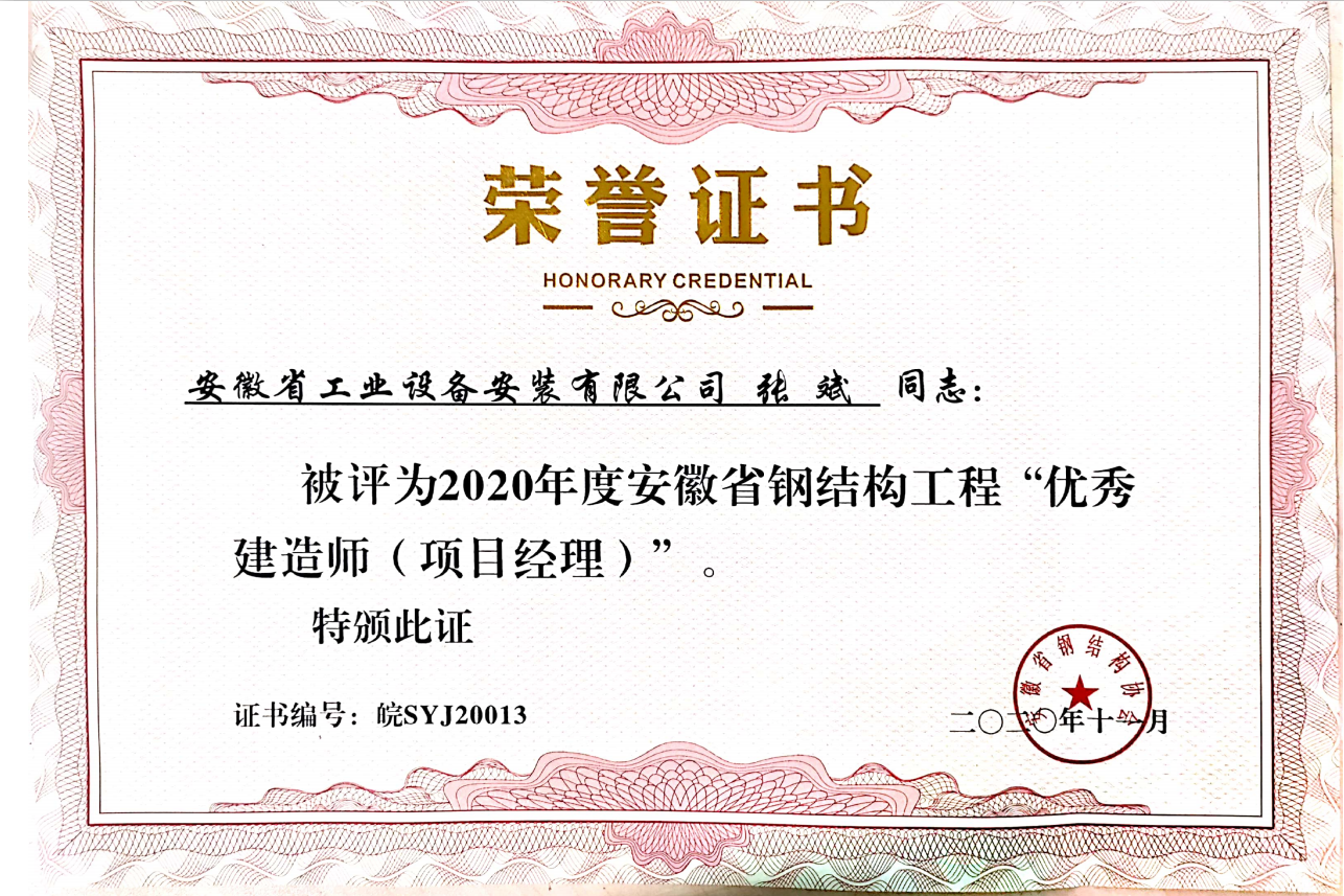近日,以“聚焦十四五,展望鋼結構”為主題的安徽省鋼結構協(xié)會(huì )三屆二次會(huì )員代表大會(huì )暨學(xué)術(shù)交流會(huì )公布了“皖鋼杯”獲獎名單,安徽安裝公司承建的淮河試驗研究中心(水工河工模型試驗廳)一期工程榮獲“皖鋼杯”優(yōu)質(zhì)工程獎,公司黨委書(shū)記、董事長(cháng)胡六中榮獲安徽省鋼結構行業(yè)優(yōu)秀企業(yè)家,蚌埠分公司副經(jīng)理、淮河試驗研究中心一期工程項目經(jīng)理張斌被評為優(yōu)秀項目經(jīng)理。這也是我公司首次榮獲鋼結構工程類(lèi)獎項。