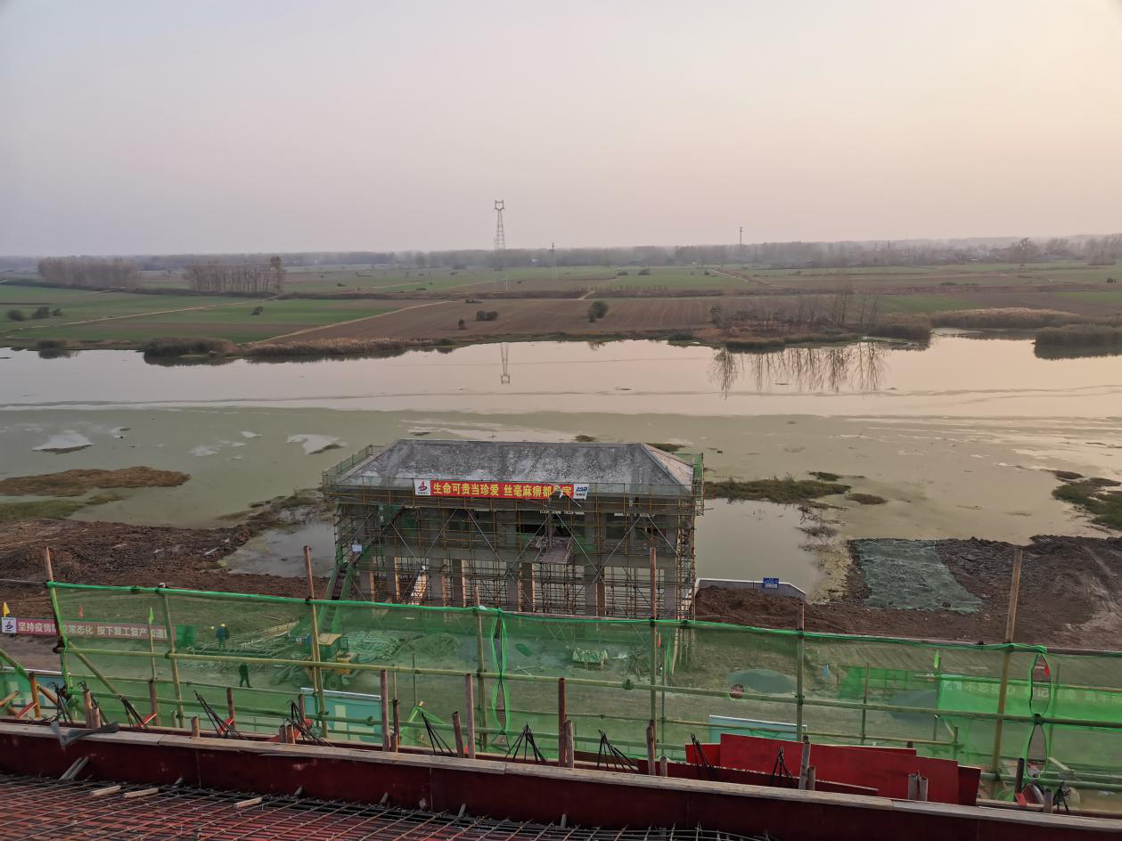 為堅決貫徹落實(shí)黨的十九屆五中全會(huì )精神和習近平總書(shū)記考察安徽重要講話(huà)精神,項目部團隊切實(shí)把生產(chǎn)任務(wù)與新時(shí)代要求結合起來(lái),強使命、明舉措、勇?lián)?,在攻堅克難中奮力前行,在爭分奪秒中苦干實(shí)干,為大干四季度,全面實(shí)現年度各項目標任務(wù)不斷沖鋒沖刺。截止11月8日,不到兩個(gè)月的時(shí)間內,化家溝泵站主廠(chǎng)房已順利完成封頂;目前,化家溝副廠(chǎng)房一層模板在建,管理房已完成土方回填,進(jìn)、出水閘啟閉機房已完成磚砌體,室外道路已完成水泥土置換地基加固,一切都在按施工進(jìn)度順利且快速推進(jìn),為爭取提前啟動(dòng)工程防洪排澇、造福人民的使命而努力。