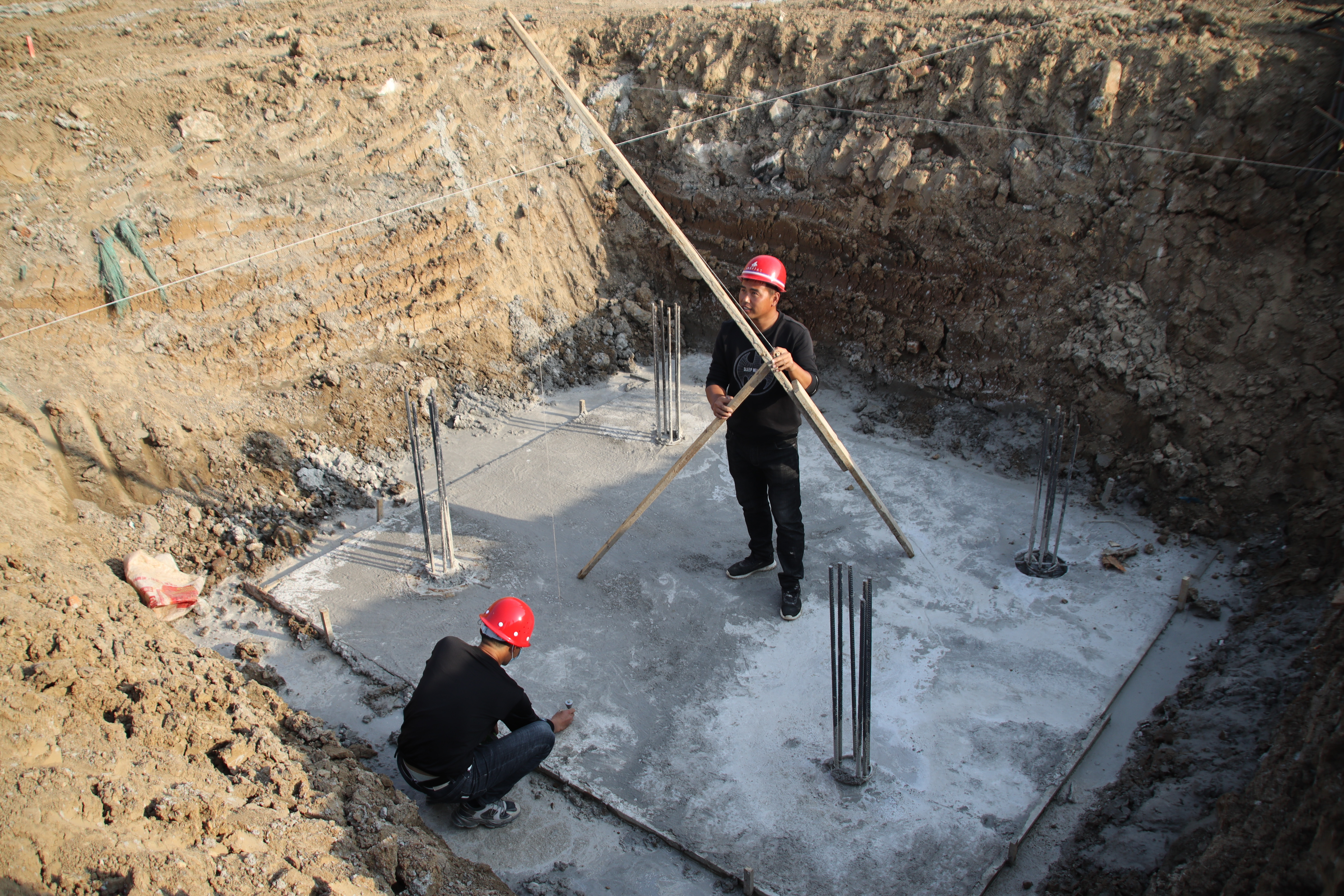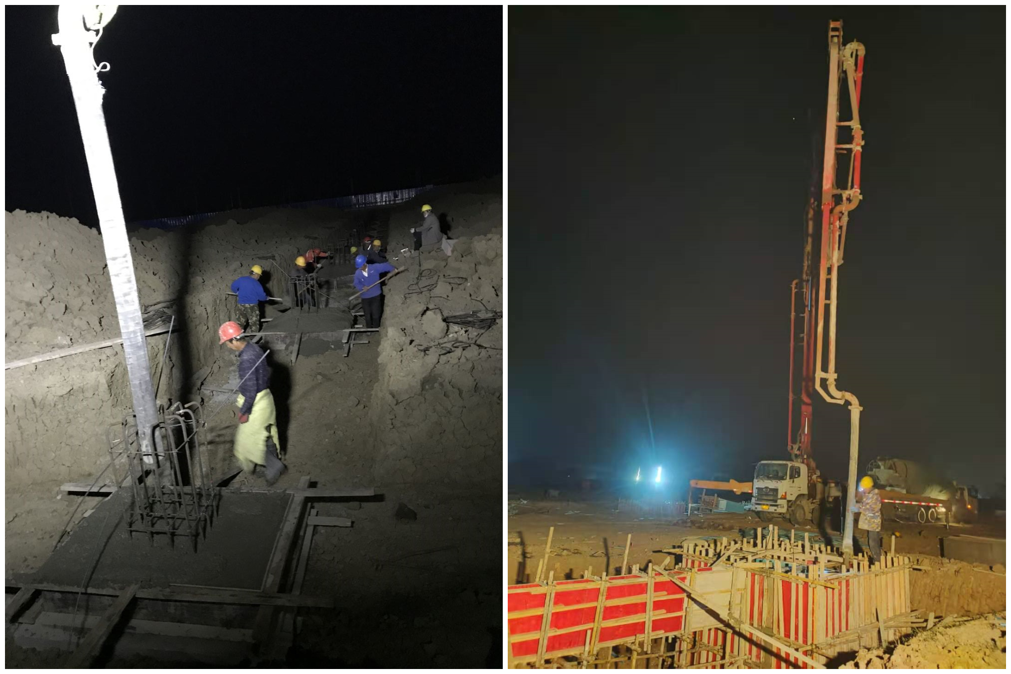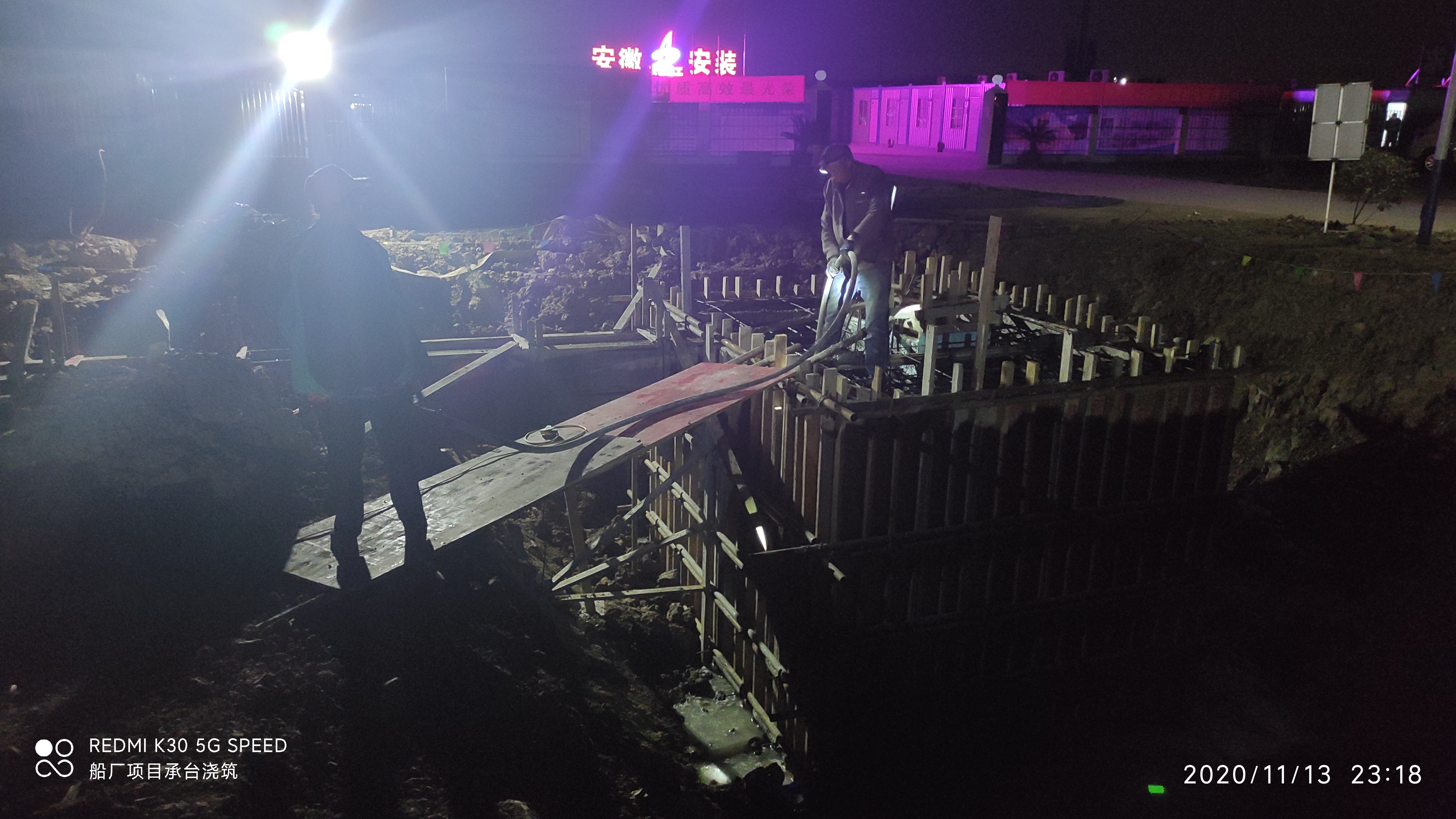 初冬以至,天氣漸寒,項目上卻是一片大干的火熱景象,放線(xiàn)測量、鋼筋焊接、承臺澆筑……所有施工機械滿(mǎn)負荷運轉,所有項目人員均在生產(chǎn)一線(xiàn)爭分奪秒。按照原施工計劃,臨港項目189個(gè)承臺的鋼筋捆扎焊接及三千余立方的混凝土澆筑應在11月底完成,但晴雨表顯示11月下旬均為陰雨天,所以必須提前完成此項施工任務(wù)。時(shí)間緊、任務(wù)重,項目部立刻行動(dòng)起來(lái),及時(shí)調整施工及進(jìn)度方案,加大人力、物力的投入,全體員工主動(dòng)放棄休息,不分晝夜、“5+2”“白+黑”,輪流堅守在施工現場(chǎng)。臨港的夜幕已經(jīng)緩緩降臨,但項目上仍然人頭攢動(dòng)、身影忙碌,施工人員在黑夜的畫(huà)紙上勾勒出了一副“大干快上,只爭朝夕”的場(chǎng)景。