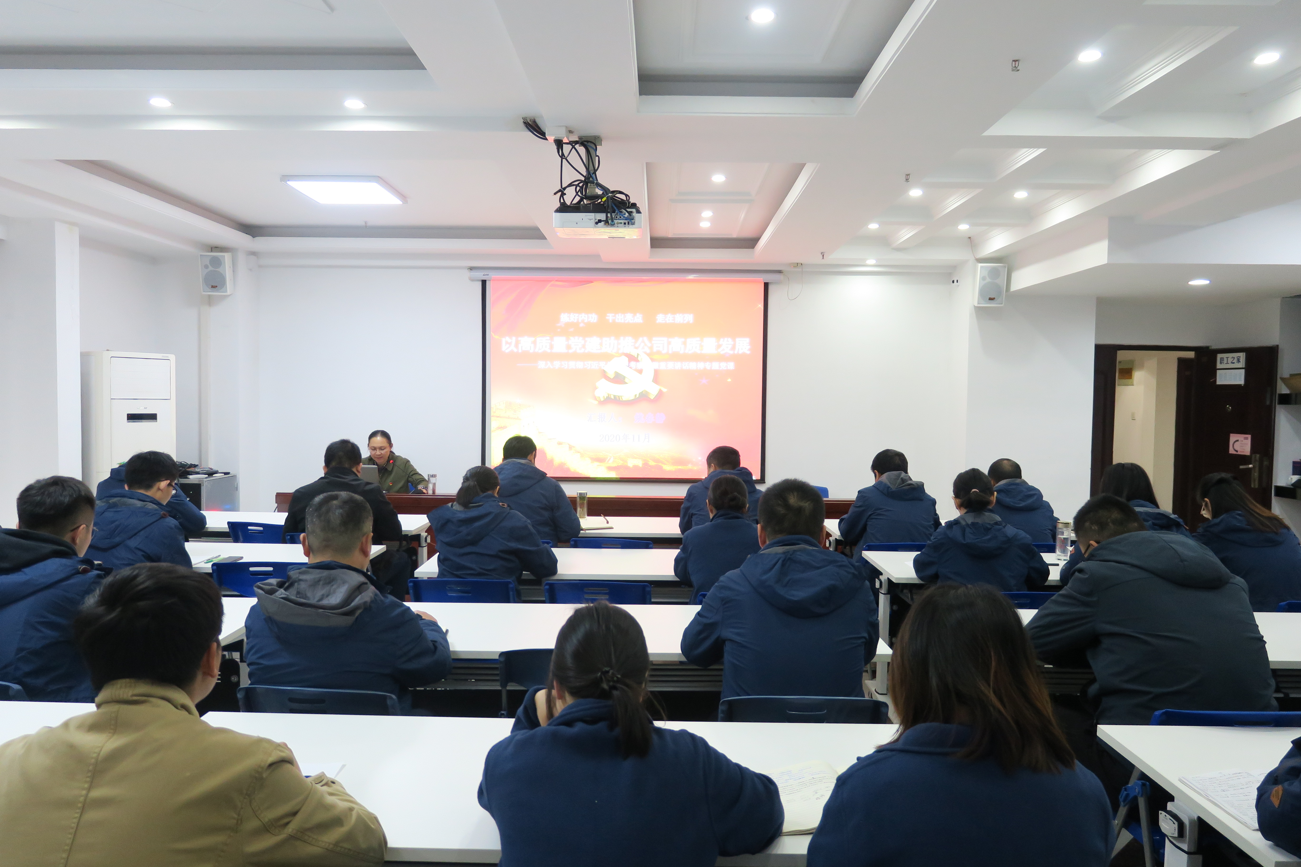 1119日下午,公司機關(guān)第二黨支部書(shū)記姚春靜赴合肥分公司作題為《練好內功·干出亮點(diǎn)·走在前列 以高質(zhì)量黨建助推公司高質(zhì)量發(fā)展——深入學(xué)習貫徹習近平總書(shū)記考察安徽重要講話(huà)精神》專(zhuān)題黨課,分公司領(lǐng)導班子成員、支部黨員、入黨積極分子、青年團員、機關(guān)及在肥人員共40余人參加了會(huì )議。會(huì )議以視頻的方式進(jìn)行,主會(huì )場(chǎng)設在公司職工之家,靈璧項目部、潛山項目部設立了分會(huì )場(chǎng)。