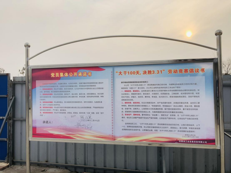 這是一場(chǎng)一開(kāi)始就注定與時(shí)間賽跑的戰斗,這也是對安徽安裝蚌埠康寧項目部全體參戰人員攻堅克難、敢打能勝的全面檢驗。2020年12月8日,康寧項目部召開(kāi)“大干100天 決戰決勝3.31”勞動(dòng)競賽啟動(dòng)大會(huì ),全面吹響大干快上的總號角。公司副總經(jīng)理高飛、劉安俊分別作動(dòng)員講話(huà),要求全體參建人員要凝心聚力、統一思想,全力以赴,嚴格按照“高標準起步,高質(zhì)量建設、高效率推進(jìn),高層次達標”的總要求,創(chuàng )新管理模式、集中優(yōu)勢資源、統籌推進(jìn)各項工作,全力以赴建好項目,樹(shù)立企業(yè)良好形象。