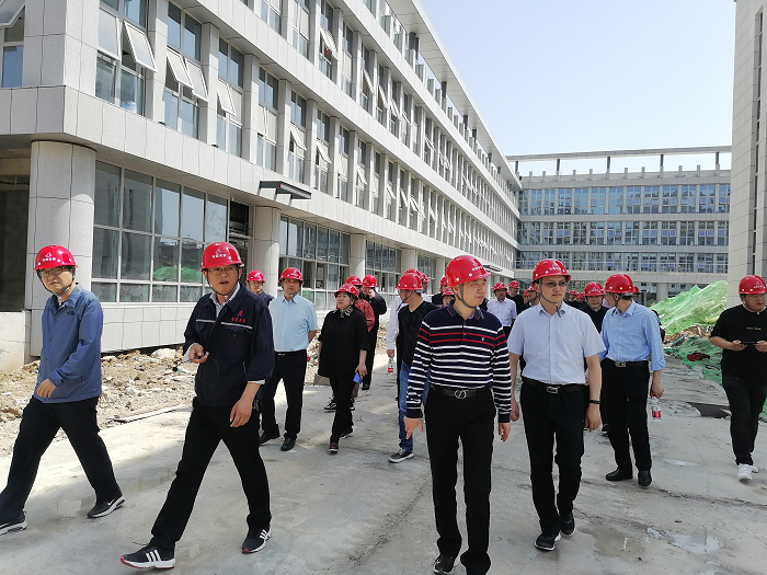 與會(huì )人員首先現場(chǎng)觀(guān)摩了阜陽(yáng)市潁東中醫院項目,在項目經(jīng)理徐明東的講解和帶領(lǐng)下,大家邊走邊看邊交流,詳細了解了項目實(shí)施情況、施工的重難點(diǎn)、進(jìn)度管控措施。