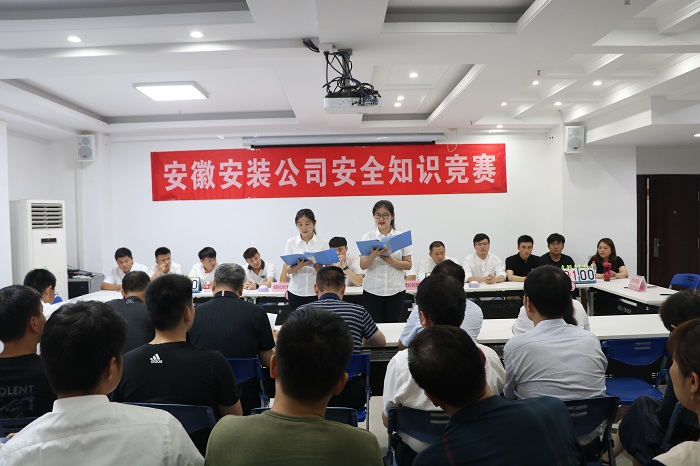 6月15日,為迎接全國第二十個(gè)“安全生產(chǎn)月”,全面貫徹“落實(shí)安全責任,推動(dòng)安全發(fā)展”主題,廣泛營(yíng)造安全文化氛圍,強化安全生產(chǎn)意識,夯實(shí)安全生產(chǎn)基礎,安徽安裝公司在15樓會(huì )議室舉辦安全知識競賽。