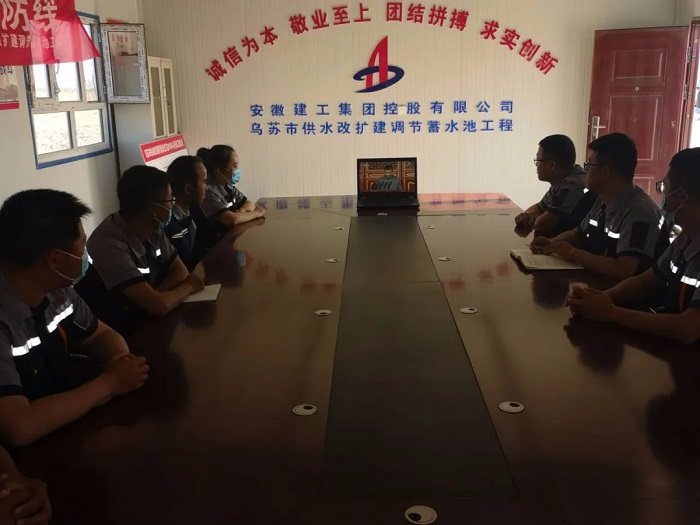新疆烏蘇分公司烏蘇市供水改擴建調節蓄水池項目部人員集中觀(guān)看大會(huì )直播