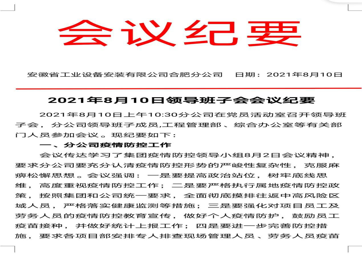 為確保疫情防控工作落實(shí)到位,合肥分公司積極行動(dòng),多措并舉,一是安排日常防疫排班表,壓實(shí)疫情防控具體責任;二是及時(shí)排查分公司員工及項目施工人員出行情況;三是定期安排人員對機關(guān)及項目辦公區域、食堂、衛生間等進(jìn)行消毒殺菌,并及時(shí)為機關(guān)及各項目員工分發(fā)口罩、洗手液、消毒棉片等防疫物品;四是強化對機關(guān)和項目人員的疫情防控教育宣傳,做好個(gè)人疫情防護,鼓勵員工疫苗接種,截至目前,分公司除去不適合接種疫苗人員,其他人員接種率達到100%。