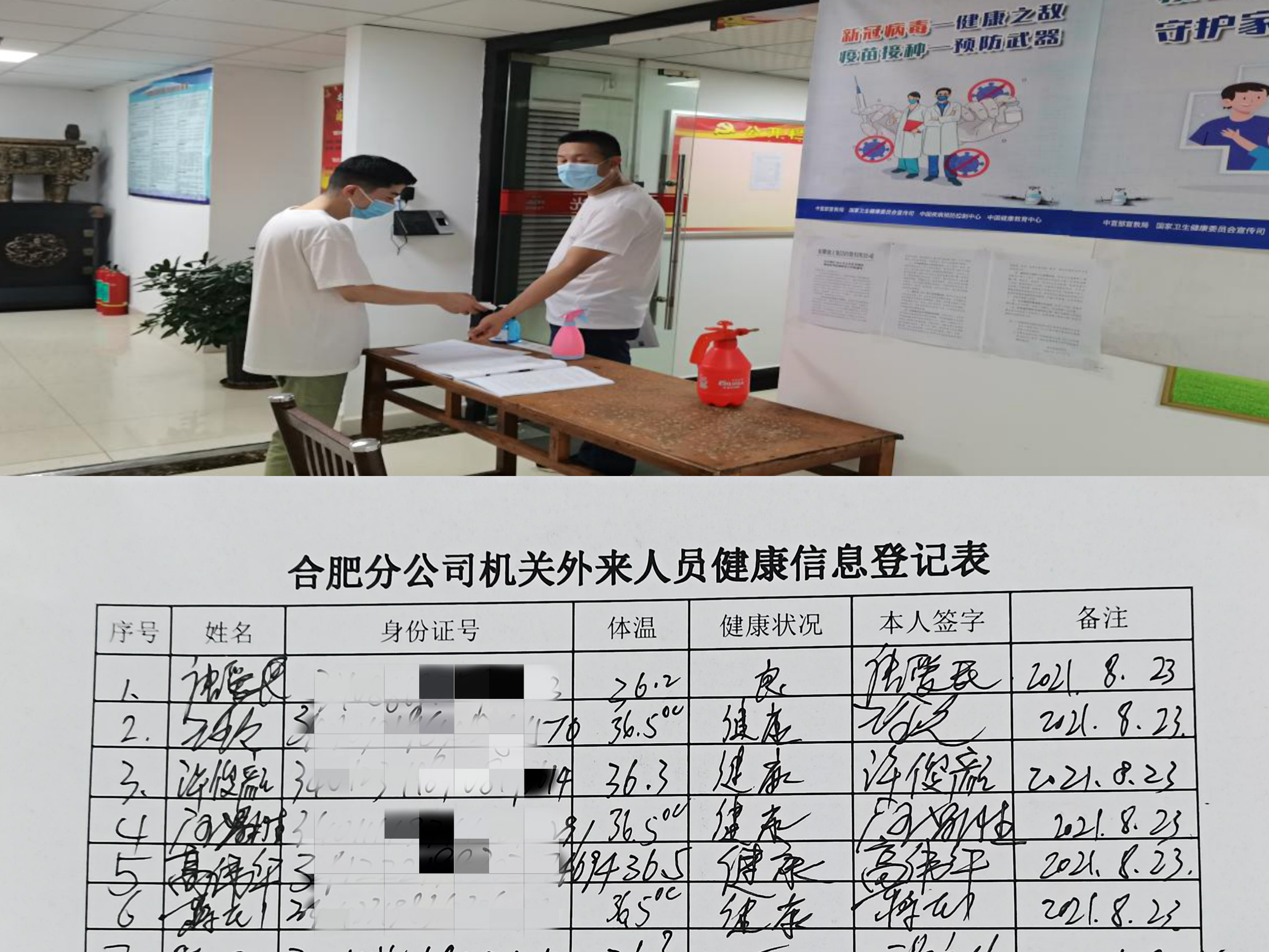 分公司機關(guān)每日體溫監測并進(jìn)行外來(lái)人員信息登記表