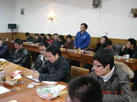 2010年2月4日是立春,公司會(huì )議室里春意盎然,一片歡聲笑語(yǔ)。人力資源處組織的大學(xué)生迎春茶話(huà)會(huì )正在進(jìn)行。公司總經(jīng)理王軍邦、黨委書(shū)記戴樹(shù)明、總會(huì )計師趙群、工會(huì )主席樊德生、副總工程師胡皖華等領(lǐng)導出席茶話(huà)會(huì ),與到會(huì )的28名大學(xué)生親切交流。