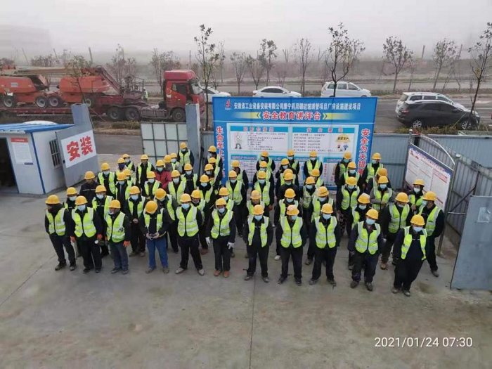 項目部人員進(jìn)場(chǎng)后明確分工,把人員分為三組,一組負責編制施工組織設計,處理設計變更,另一組負責現場(chǎng)施工,第三組全力做好后勤保障工作。當時(shí)的情況可以說(shuō)是火燒眉毛,一方面康寧方要求確保節點(diǎn)工期,但現場(chǎng)卻存在邊設計邊施工邊修改情況,每天發(fā)出的工程聯(lián)系單就多達近二十份。安裝工程工序繁復,現場(chǎng)又同時(shí)與土建、鋼結構大面積交叉施工;另一方面項目部管理人員中有許多人都是首次參與外企項目施工,對外企的技術(shù)和管理要求不適應。怎么辦?是臨陣退縮還是迎難而上?面對這種情況,分公司黨支部以黨史學(xué)習教育為契機,開(kāi)展黨員公開(kāi)承諾踐諾、黨員示范崗活動(dòng),號召黨員發(fā)揮先鋒模范作用,工會(huì )相繼開(kāi)展了“大干120天,確保完成施工任務(wù)”,“學(xué)黨史、保安康、 工期、沖千億,大干60天,確保完成目標任務(wù)”勞動(dòng)競賽活動(dòng),向全體參戰人員發(fā)出了競賽倡議書(shū),通過(guò)勞動(dòng)競賽統一思想,鼓舞士氣,項目部人員吃、住、辦公在工地,加班加點(diǎn),早已成家常便飯。幾乎每一名管理人員都是白天看現場(chǎng),晚上參加項目現場(chǎng)推進(jìn)會(huì ),細細梳理每一道工序、每一個(gè)施工節點(diǎn),制定詳細實(shí)施計劃,大家只有一個(gè)信念,一定要確保如期完工,展示安徽安裝良好的形象。