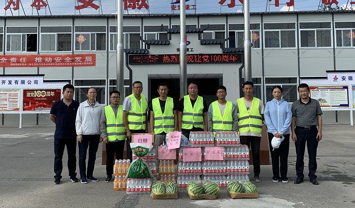 為做好高溫天氣下項目施工防暑降溫工作,切實(shí)保障項目一線(xiàn)職工的安全健康,確保安全生產(chǎn)工作順利展開(kāi),7月15日以來(lái)合肥分公司領(lǐng)導班子成員分別前往宿州新宇藥業(yè)、靈璧迎賓大道、固鎮三八河景觀(guān)工程、潛山高鐵站前廣場(chǎng)等各在建項目現場(chǎng),開(kāi)展夏日“送清涼”慰問(wèn)活動(dòng),為現場(chǎng)一線(xiàn)工作人員送去防暑降溫慰問(wèn)物資,并對酷暑天氣仍然堅守在一線(xiàn)施工作業(yè)人員表示親切的關(guān)心和問(wèn)候。