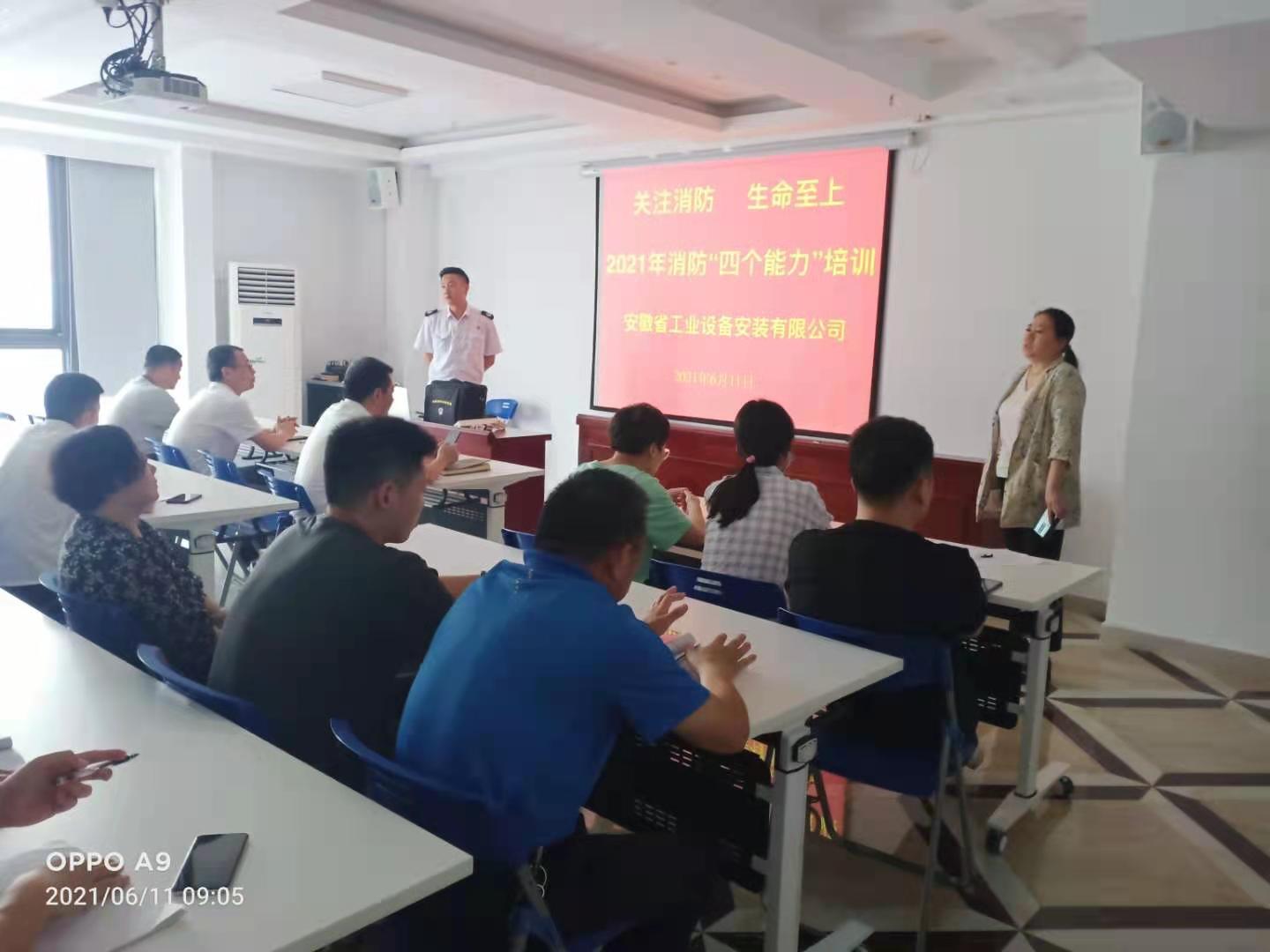 為進(jìn)一步加強公司機關(guān)全體員工消防安全意識,提高員工自我防范和自救互救能力,6月11日上午,安徽安裝公司以“安全生產(chǎn)月”活動(dòng)為契機,特邀消防培訓中心教官為公司職工進(jìn)行了一場(chǎng)生命至上消防“四個(gè)能力”安全知識技能培訓。公司副總經(jīng)理李原應邀出席本次培訓,機關(guān)各部門(mén)40余名職工參加了培訓。
