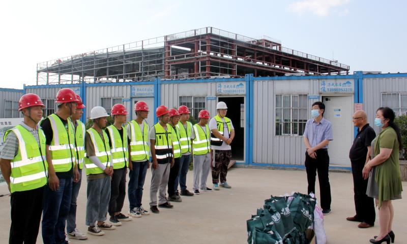 8月17日下午,赤日炎炎,蚌埠市政協(xié)副主席、市總工會(huì )主席楊金城,市總工會(huì )四級調研員鞠曉萍,蚌埠市經(jīng)開(kāi)區管委會(huì )工會(huì )主席方燕一行來(lái)到安徽安裝臨港智能制造產(chǎn)業(yè)園項目施工現場(chǎng),看望一線(xiàn)生產(chǎn)工人,發(fā)放防暑降溫物品,表達蚌埠市總工會(huì )組織對一線(xiàn)職工的關(guān)愛(ài)。