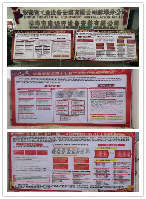 2月10日—11日,在分公司機關(guān)和各在建項目一線(xiàn)召開(kāi)兩級職代會(huì )精神專(zhuān)題宣貫會(huì )。會(huì )議由分公司黨支部書(shū)記程茂麗主持。會(huì )上,程茂麗首先傳達了集團公司黨委書(shū)記、董事長(cháng)趙時(shí)運在集團二屆二次職代會(huì )暨2022年度工作會(huì )議作的題為《奮力譜寫(xiě)安徽建工高質(zhì)量發(fā)展新篇章 以?xún)?yōu)異成績(jì)迎接黨的二十大勝利召開(kāi)》的講話(huà)和集團黨委副書(shū)記、總經(jīng)理、董事劉家靜作的題為《拉高標桿、爭創(chuàng )一流 不斷實(shí)現安徽建工更高質(zhì)量更可持續發(fā)展》的工作報告;隨后又帶領(lǐng)大家深入解讀了公司黨委書(shū)記、董事長(cháng)胡六中在公司十七屆二次職代會(huì )上所作的《守正創(chuàng )新 實(shí)干篤行 強基固本 競進(jìn)提質(zhì) 以趕考姿態(tài)答好安徽安裝高質(zhì)量發(fā)展新答卷》的報告及《黨建領(lǐng)航聚合力 深度融合強保障 以高質(zhì)量黨建領(lǐng)航安徽安裝高質(zhì)量發(fā)展》的講話(huà)。