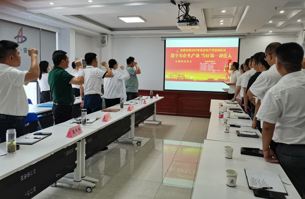 “我是一名安徽建工人,我鄭重宣誓,時(shí)刻注意安全,遵守安全法規;履行安全職責,提高安全技能……”伴隨著(zhù)莊嚴響亮的宣誓后,大家熱情高漲,踴躍地簽上自己的名字。至此,分公司正式拉開(kāi)了“安全生產(chǎn)月”活動(dòng)的序幕。