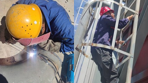 圖為甘肅西部鑫宇項目管道配管焊接及水箱焊接檢查場(chǎng)景