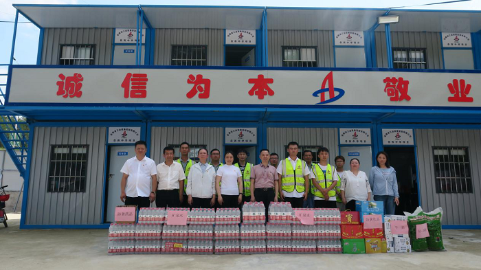 公司工會(huì )先后來(lái)到岳西中學(xué)建設項目(一期)安裝工程項目、中石化安慶分公司煉油轉化工200噸/小時(shí)污水汽提裝置項目、舒城第一中學(xué)遷建項目、四水廠(chǎng)DN1800、DN1400供水管道遷建工程管網(wǎng)項目、花園大道(徽州大道-包河大道)道路工程項目、定遠壹石通化學(xué)科技廠(chǎng)房項目、凱盛科技超薄柔性玻璃(UTG)二期5#、6#車(chē)間及配套設施工程項目,給廣大一線(xiàn)職工送去白糖、綠豆、礦泉水、飲料、藥品等防暑降溫物品,將工會(huì )組織的關(guān)心關(guān)愛(ài)傳遞給項目職工。