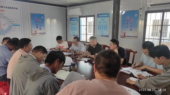 9月21日下午,公司總工程師吳繼成一行赴蚌埠分公司霍邱縣金巢礦業(yè)有限責任公司選鐵選云母技改工程項目開(kāi)展三季度聯(lián)合檢查。公司總工辦、工程管理部、安全管理部、成本合約部等部門(mén)負責人聯(lián)合檢查,蚌埠分公司黨支部書(shū)記、副經(jīng)理王偉,副經(jīng)理張斌、郭洋及項目部全體職工參加。