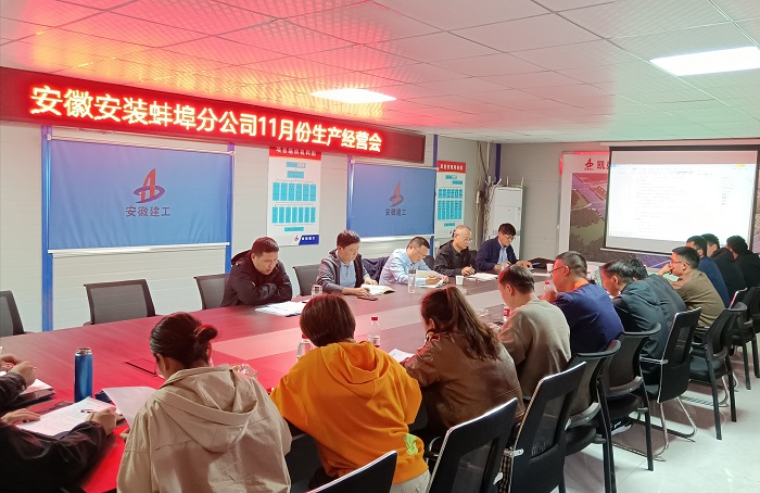11月10日,蚌埠分公司在凱盛項目部召開(kāi)11月份生產(chǎn)經(jīng)營(yíng)會(huì )。分公司領(lǐng)導班子成員、各項目主要負責人、機關(guān)各部門(mén)負責人及工程部全體員工參加會(huì )議,會(huì )議由分公司副經(jīng)理郭洋主持。