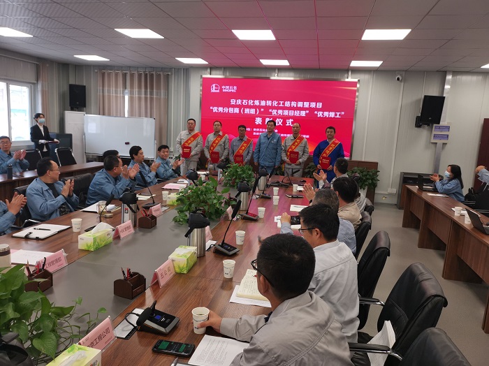 安慶石化副總經(jīng)理張業(yè)金宣讀表彰決定并作總結講話(huà)。他指出,在煉轉化項目執行中,各參建單位圍繞項目目標任務(wù),共克時(shí)艱、團結奮斗,取得了突出成績(jì)。并要求各參建單位和個(gè)人要向被表彰的先進(jìn)看齊,學(xué)習先進(jìn)、趕超先進(jìn),堅定信心、振奮精神,發(fā)揚“一家人,一條心,一個(gè)目標一股勁”精神,共同推進(jìn)安慶石化項目高質(zhì)量建成。