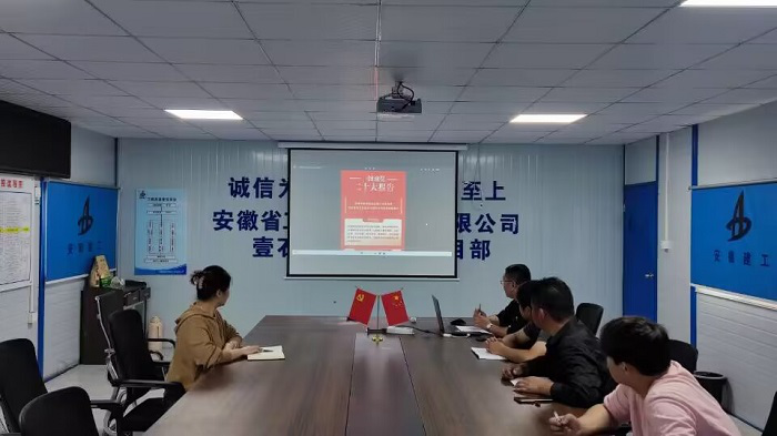 安徽安裝房建(裝飾)分公司壹石通項目部組織學(xué)習安徽共青團公眾號發(fā)表的關(guān)于黨的二十大的總結學(xué)習文件。