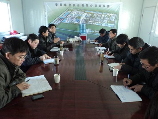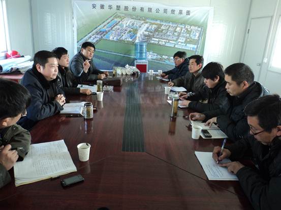 王總一行首先聽(tīng)取了安徽華塑項目部關(guān)于質(zhì)量、安全文明、施工進(jìn)度、工作目標和下一步工作計劃的匯報。王總一行對安徽華塑項目部在開(kāi)工短短兩個(gè)月內取得的成績(jì)給予充分肯定。王總特別指出,在工期緊、任務(wù)重、困難大的情況下,項目部一定要思想上重視,制定科學(xué)合理的方案,與施工各方進(jìn)行高效溝通,搶工期、保質(zhì)量、展風(fēng)采,為后續工程的承接創(chuàng )造有利條件。