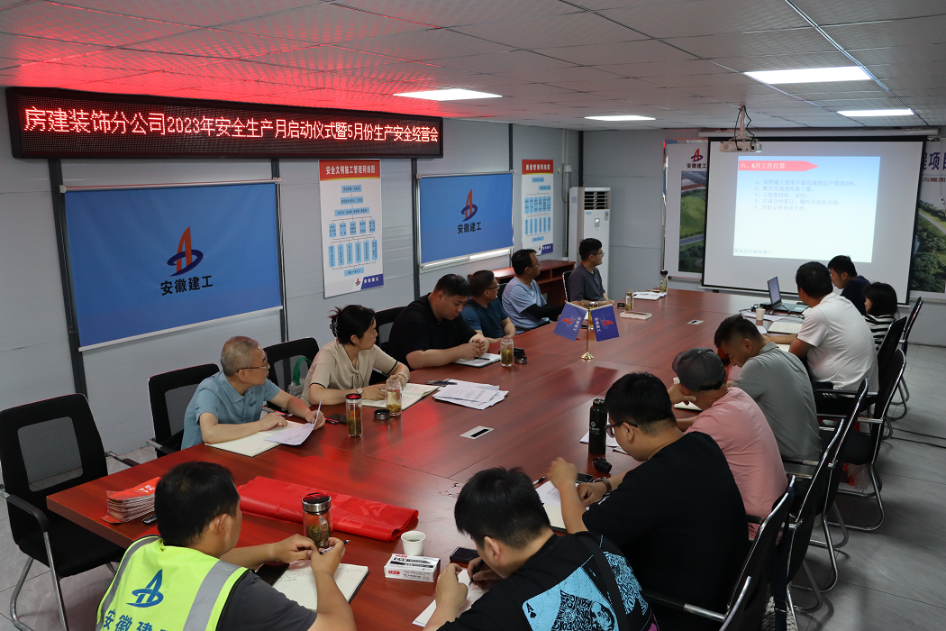 5月31日上午,房建(裝飾)分公司在阜南污水廠(chǎng)項目會(huì )議室召開(kāi)5月份生產(chǎn)安全經(jīng)營(yíng)會(huì )。分公司領(lǐng)導班子成員、各部門(mén)負責人、項目經(jīng)理及項目員工共20余人參加會(huì )議。會(huì )議由分公司副經(jīng)理王岳濤主持。