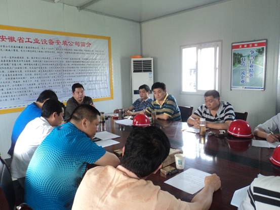 項目部土建、安裝負責人對現階段的工程進(jìn)展、質(zhì)量、安全情況進(jìn)行了匯報,滁州分公司副經(jīng)理、該項目總負責李多德對資金回收及下一步安裝工作做了具體匯報。