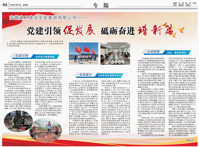 媒體聚焦丨蚌埠日報專(zhuān)版報道安徽建工建設安裝集團有限公司——黨建引領(lǐng)促發(fā)展 砥礪奮進(jìn)譜新篇