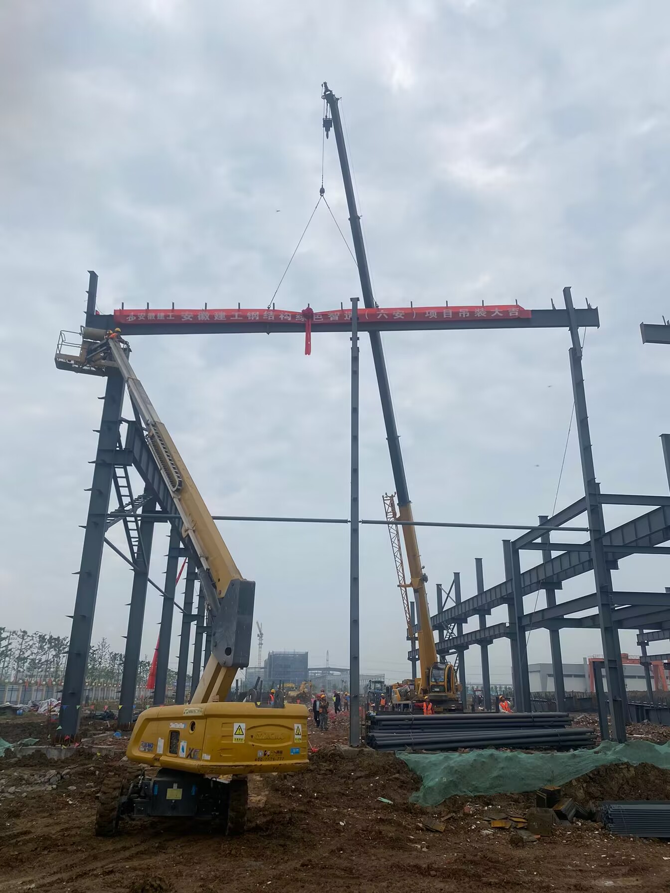 【提速奮戰二季度】建工安裝安徽建工鋼結構綠色智造(六安)項目順利開(kāi)始“大跨度 屋面梁吊裝作業(yè)”