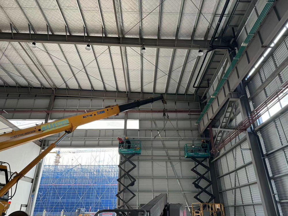 目前項目施工現場(chǎng)100多名工人各司其職,進(jìn)行2#重鋼車(chē)間廠(chǎng)房橋架、消防系統、氣體管道、裝修、圍護結構、門(mén)窗、通風(fēng)氣樓、設備基礎等安裝。同時(shí)為應對持續高溫天氣,項目部合理安排作業(yè)時(shí)間,做好后勤保障工作,現場(chǎng)不間斷巡查時(shí)刻關(guān)注工人狀態(tài),在確保施工人員健康和安全的前提下,全力以赴加快廠(chǎng)房項目建設進(jìn)度,預計7月26日前完成大部分項目?jì)热莸氖┕と蝿?wù)。