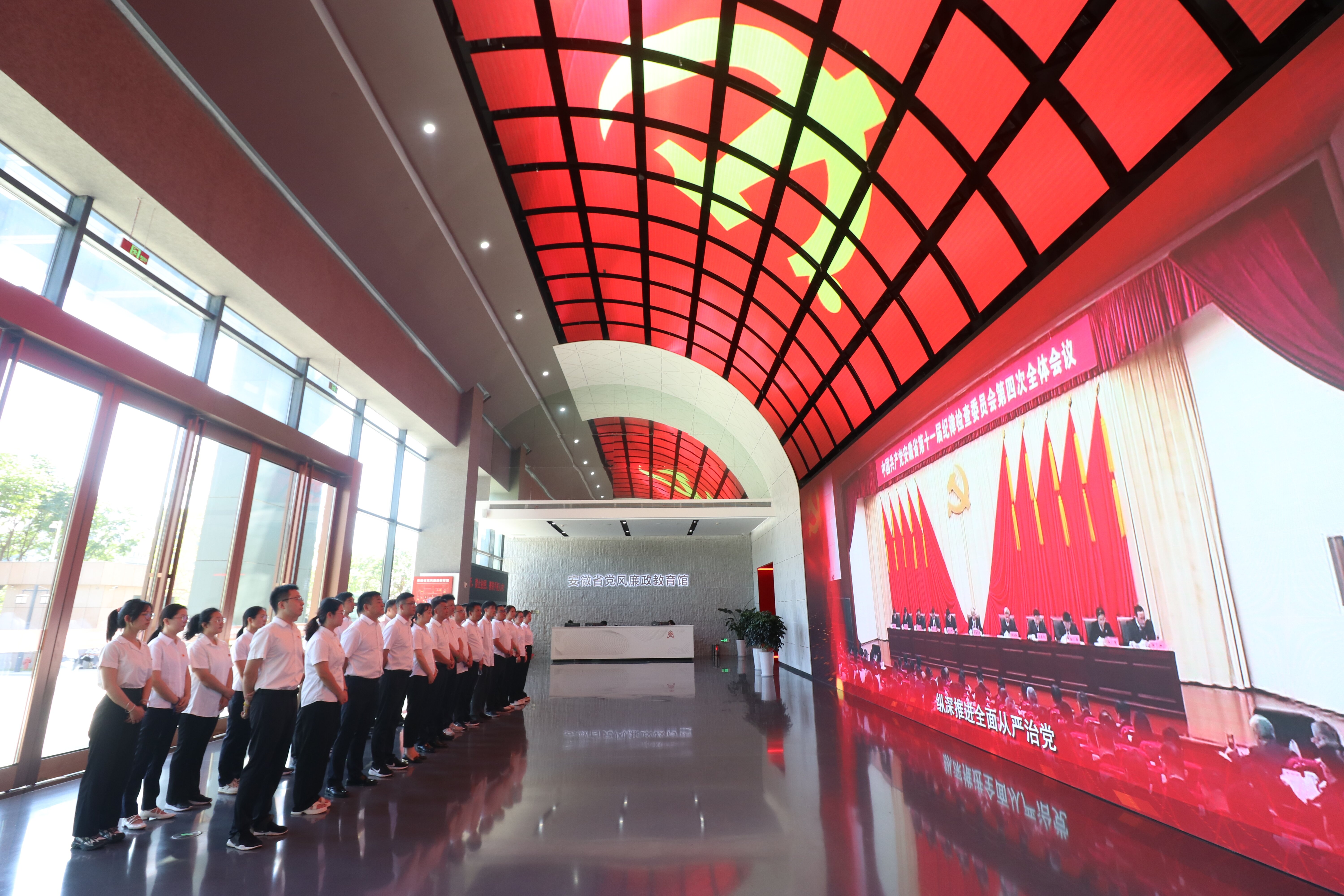 進(jìn)入教育館,全體人員集中觀(guān)看了《永遠在路上》專(zhuān)題片。隨后,依次參觀(guān)了“紀律立黨·從嚴治黨”“廉潤江淮·清風(fēng)揚帆”“以案為鑒·警鐘長(cháng)鳴”“不忘初心·永葆清廉”四個(gè)展廳。跟隨著(zhù)講解員的步伐,通過(guò)聆聽(tīng)講解、觀(guān)看視頻圖片、場(chǎng)景還原、體驗空間等形式,全方位學(xué)習回顧了建黨百年來(lái)的紀律建設史,以及安徽省委落實(shí)全面從嚴治黨、深入開(kāi)展黨風(fēng)廉政建設和反腐敗斗爭的豐碩成果。一組組觸目驚心的數字、一幕幕聲淚俱下的懺悔、一段段發(fā)人深省的旁白,令參觀(guān)的黨員干部職工受警醒、明底線(xiàn)、知敬畏。參觀(guān)結束后,全體黨員面向黨旗,舉起右手,莊嚴宣誓,重溫入黨時(shí)的承諾,在鏗鏘有力的宣誓聲中回望初心使命。本次活動(dòng)大家還集中觀(guān)看了30分鐘警示教育片。